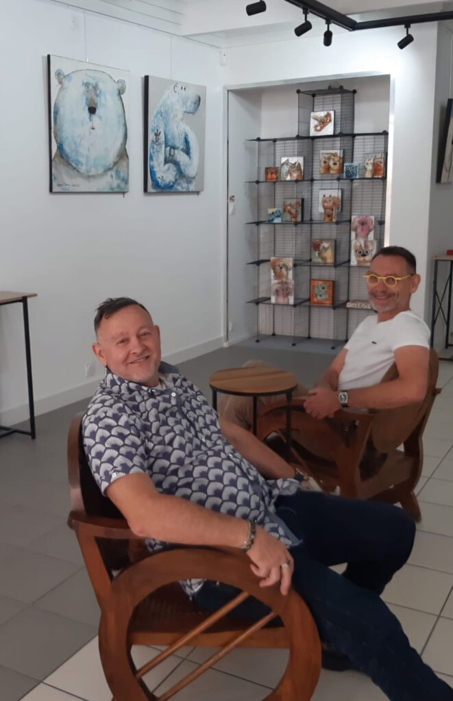 L’un a passé enfance et adolescence rue des beaux arts, dans le cœur foisonnant des mille galeries du Paris artistique. L’autre a créé l’exposition « Vol de nuit » qui permet, chaque année depuis 15 ans, à un public toujours plus nombreux, d’admirer des œuvres d’artistes régionaux et nationaux, dans l’espace atypique d’une immense serre maraichère.